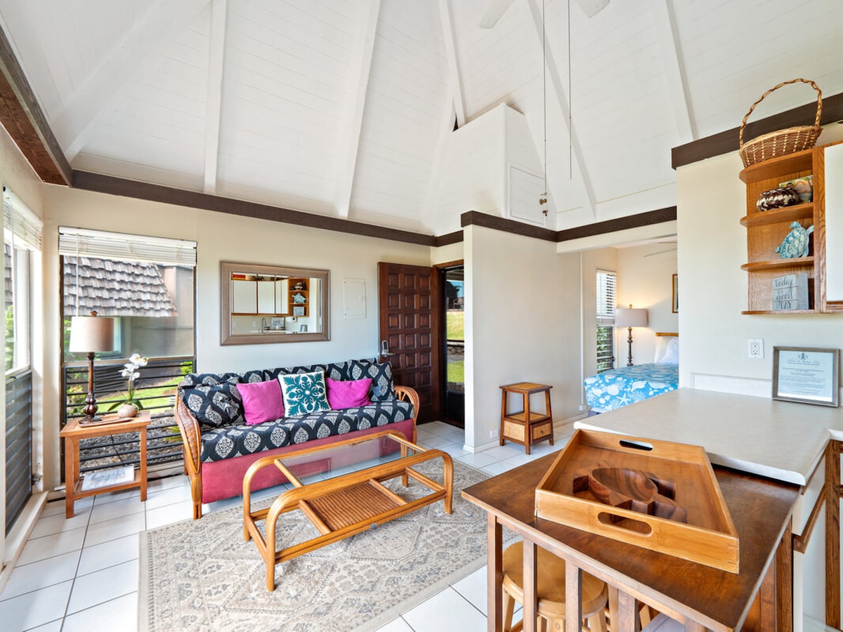 Wake up to some of the best ocean views in the area from this peaceful, modern studio. Guests often say that one night is just not enough to truly enjoy this special oasis. Ideal for those seeking serenity away from the crowds, the space offers a king-size bed, full bed/sofa, air conditioning & washer/dryer. A well-equipped kitchenette simplifies meals. Enjoy a covered lanai, gas fire pit, fast Wi-Fi, smart TV, beach gear, and all the essentials for a relaxed stay. TA-086-495-2832-01