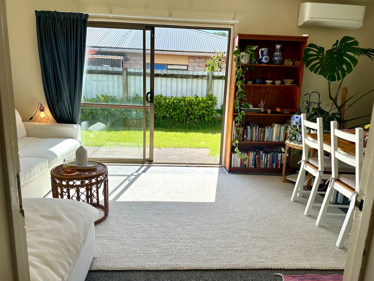 Enjoy a stylish experience at this centrally located Papamoa retreat. A separate private unit attached to the hosts dwelling. The studio has a queen bed & set of bunks (only suitable for children under 50 kilos). An additional adjoining room with a queen bed is available on request. Our neighbourhood is extremely safe & nice and quiet. The stunning Papamoa beach with the Surf Club is an easy quick walk & shops, Restaurants & Bars plus Supermarkets are a flat easy walk also.