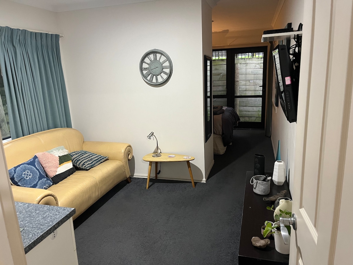 Private, self-contained, equipped with everything you could need for a short or long stay. Contains:1 Living room ,1 Bedroom,1 Bathroom,2 Kitchenettes,Laundry, Porch & Small private outdoor area.Studio is attached to the house with a separate guest entrance, securely locked off from the house. Ideal for 2 people, travelling friends, solo adventurers. Bayfair shopping centre,Beach,Baywave Pools&Gym and all amenities-short walking distance. Bikes &Breakfast.