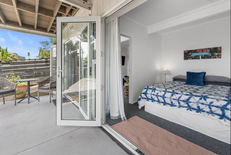 Recently renovated studio room with luxury tiled shower, laundry and cooking facilities, and a small private deck with BBQ. There is a super comfortable queen sized bed, single bed and single trundler bed. A heat pump allows heating in winter and cooling in summer. The studio is attached to the main house but completely seperate with independent access. The stunning beach is only 300 metres walk away via conveniently located walkways. Off street parking is available. 40 inch TV with Netflix.