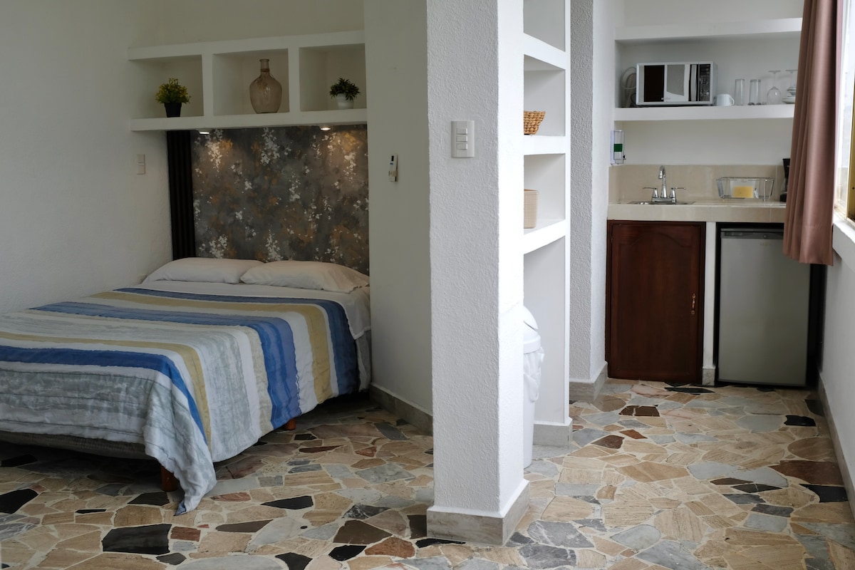 Disfruta del fácil acceso a todo desde este alojamiento perfectamente ubicado, acondicionado con servicios esenciales para tu comodidad. Esta habitación con cama matrimonial para dos personas esta ubicada: + A 1 cuadra del Parque / Presidencia municipal + A 2 cuadras del mercado y cerca de la zona comercial + A media cuadra de los juzgados + 10 minutos de la Central de Autobuses + Muy cerca de locales/restaurantes reconocidos en la ciudad por su sazón.