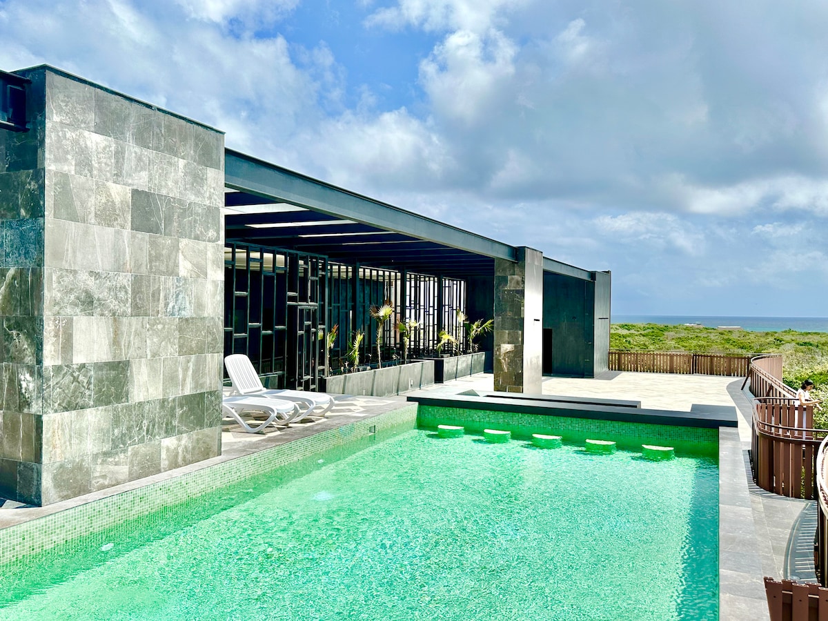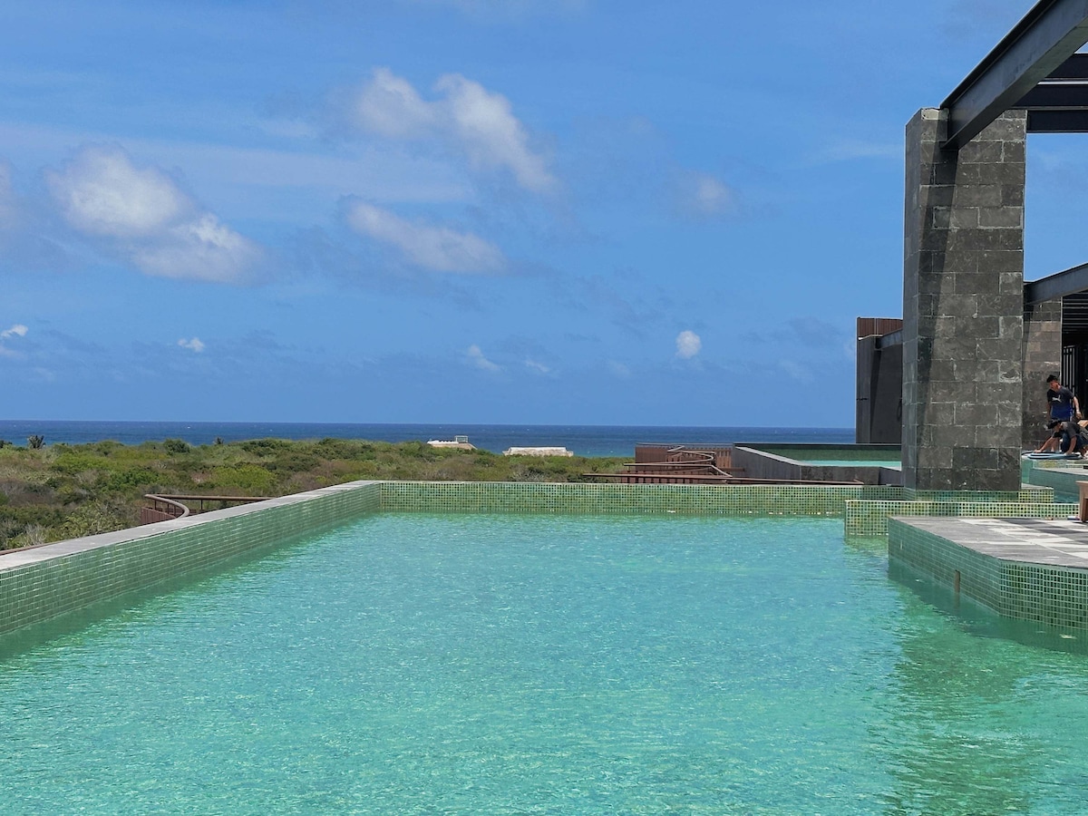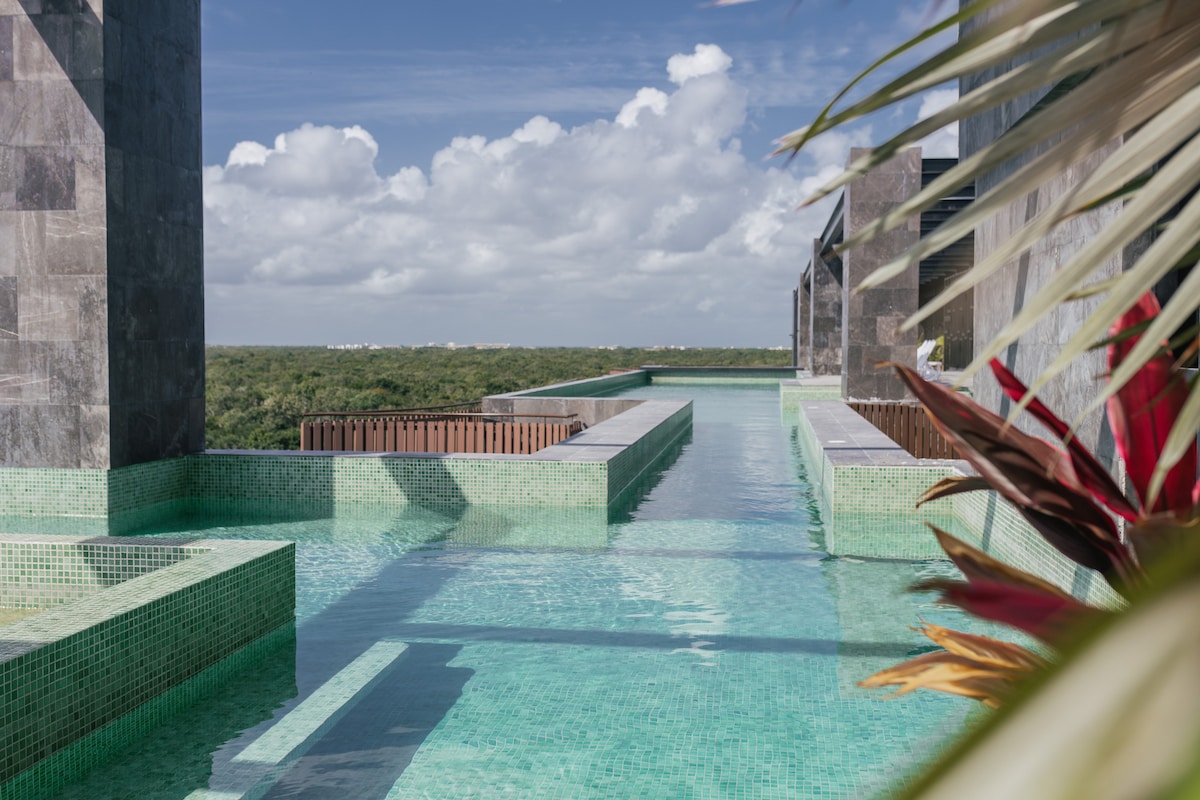 Experience Tulum in a truly unique way 📍Prime Location - Just steps from the BEACH and right next to Jaguar Park Only a 5-minute walk to a FREE Beach Club 🏊♀️4 Rooftop Pools + 2 Floating Glass Bridges - perfect for unforgettable photos 🛁 Private HOT-WATER Jacuzzi Spacious 1-bedroom designer apartment featuring: 🛌 King-size bed Dual Smart TVs Living room + outdoor sitting area Large wardrobe 🍽 Fully equipped kitchen 🚿 Full bathroom with filter Your perfect home in Tulum🌴