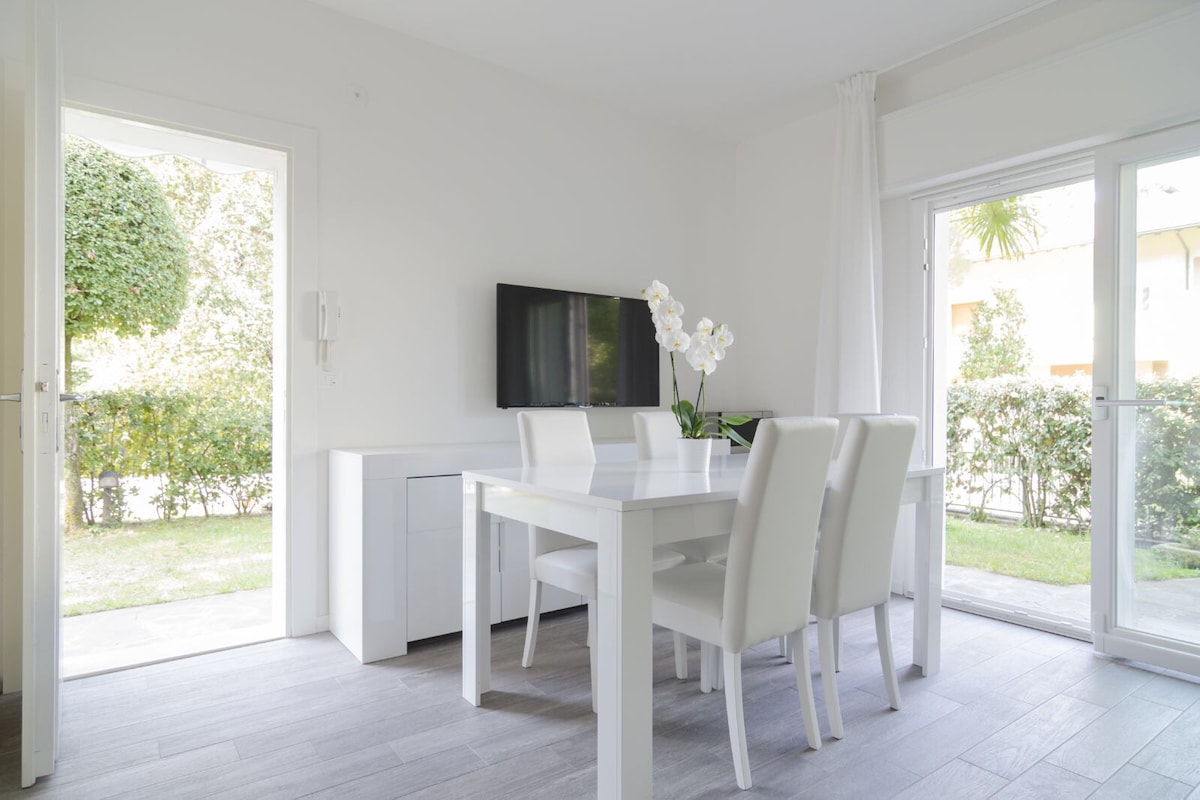 CIN: IT039007C15XN2GQSO Appartamento nuovissimo immerso nel verde vicino al centro e a 1280 metri dal mare. 1 camera con letto matrimoniale,un salotto con cucina e un divano letto 160x200. A soli 5 minuti a piedi dalla Stazione di Cervia Milano Marittima. A 1280 passi dal mare. 2 posti auto in giardino. Possibilità di pranzare all’esterno sotto al portico.