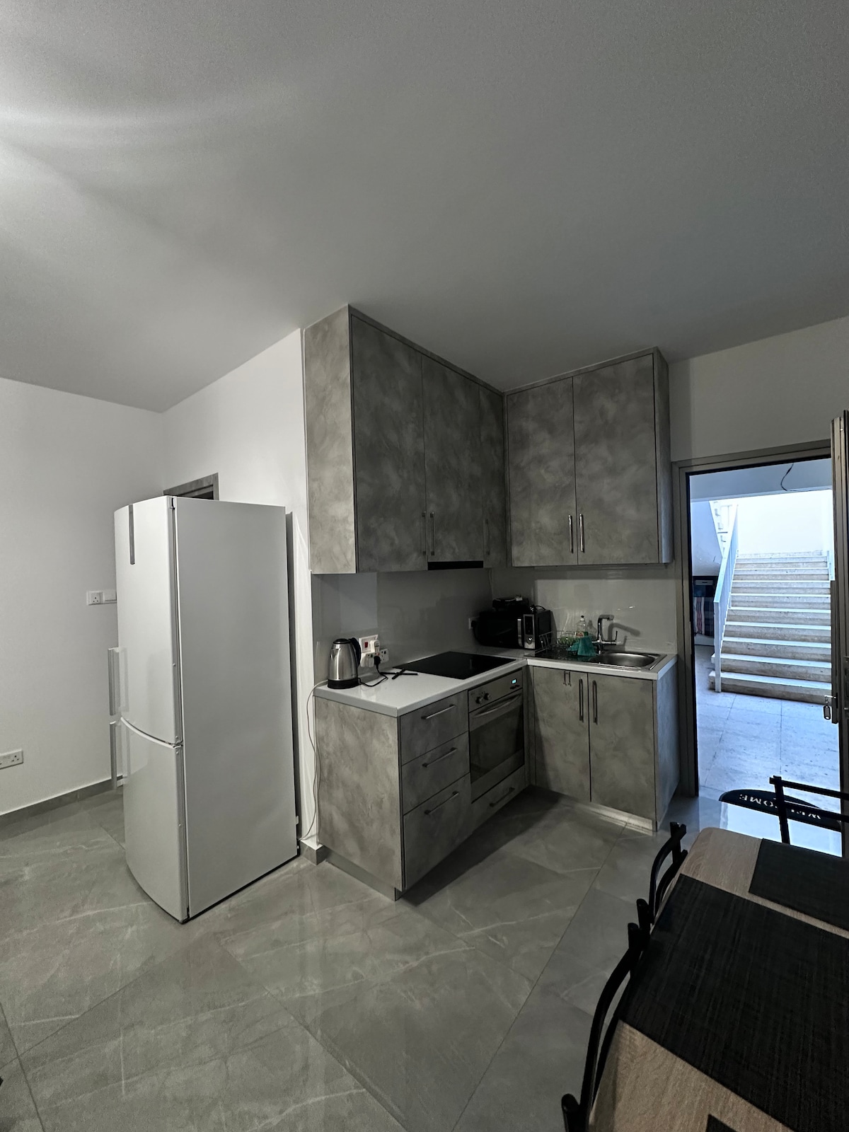 Studio with patio. for 2 persons. size of the room 27 square meters included furnitures & 7 square meters patio. Double bed. Full renovated. Hairdryer _ wifi free internet access _ T.v (flat screen .43 inches). big fridge _ washing machine. ceramic electric cooker coffee machine ....... very strong Aircontition or heater _ ceiling fan _ spoons, knifes,plates are also available