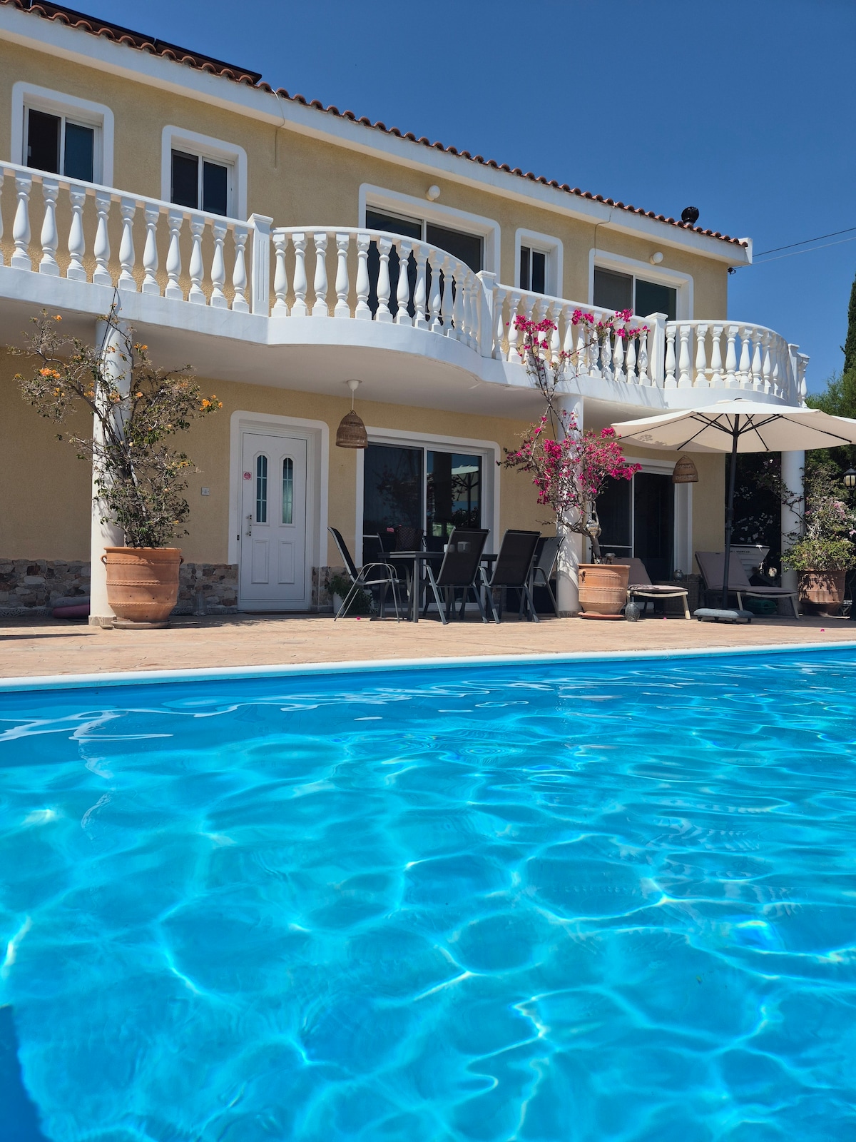 Villa on the sea front villa with private pool and direct access to the beach. Private location with unobstructed sea and mountain views. Amenities within walking distance. Four spacious bedrooms all with en-suite facilities. Large BBQ seating area.