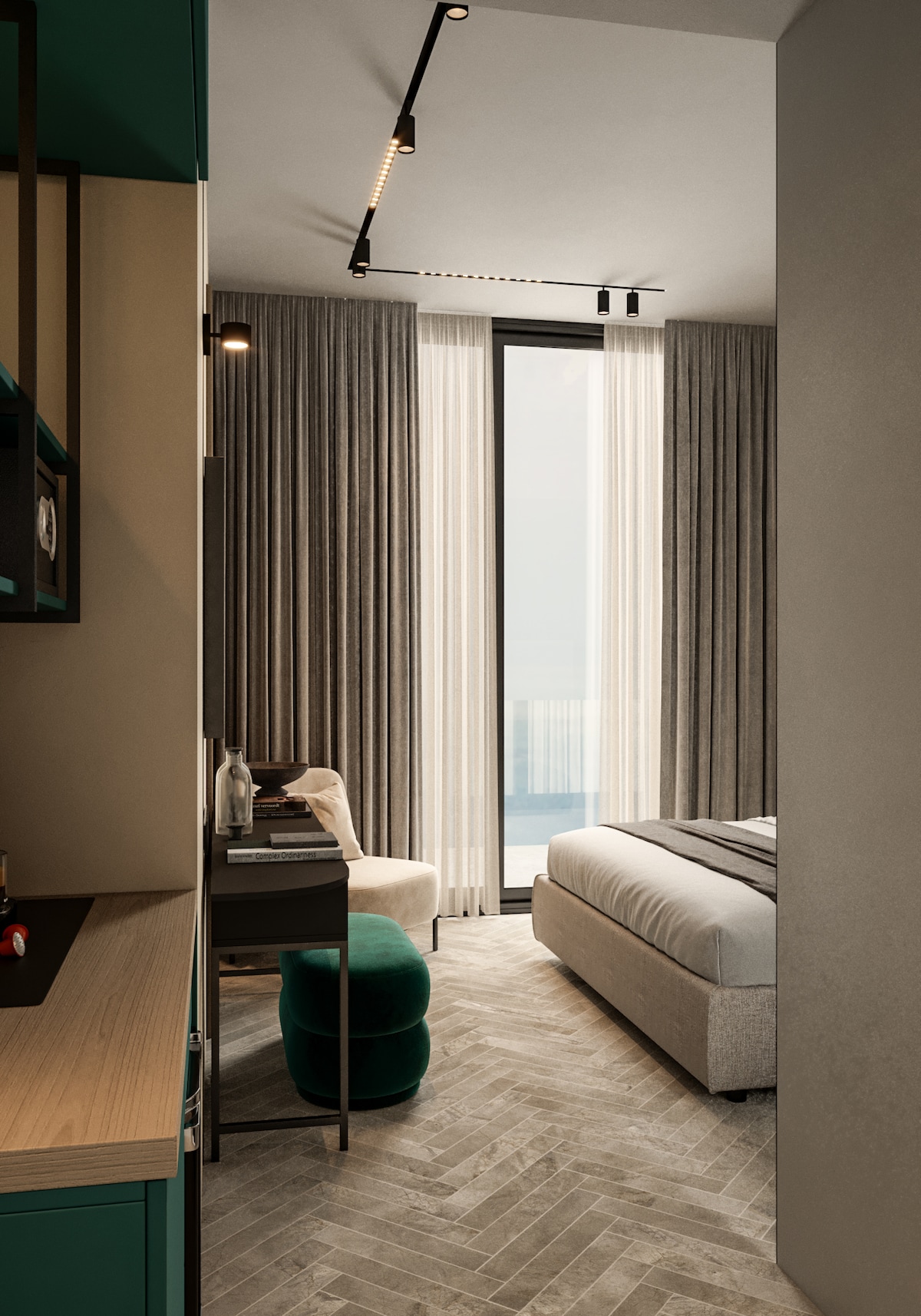 Positioned at the corners of the building, the Signature Suites are defined by floor-to-ceiling glass walls on two sides, creating a brighter, more open living space with enhanced natural light and extended views. Rooms are approximately 23sqm with a 7sqm balcony, thoughtfully equipped with a walk-in shower, Smart TV, in-room safe, minibar, and coffee facilities, perfect for slow mornings surrounded by natural light and views across the Mediterranean Sea.