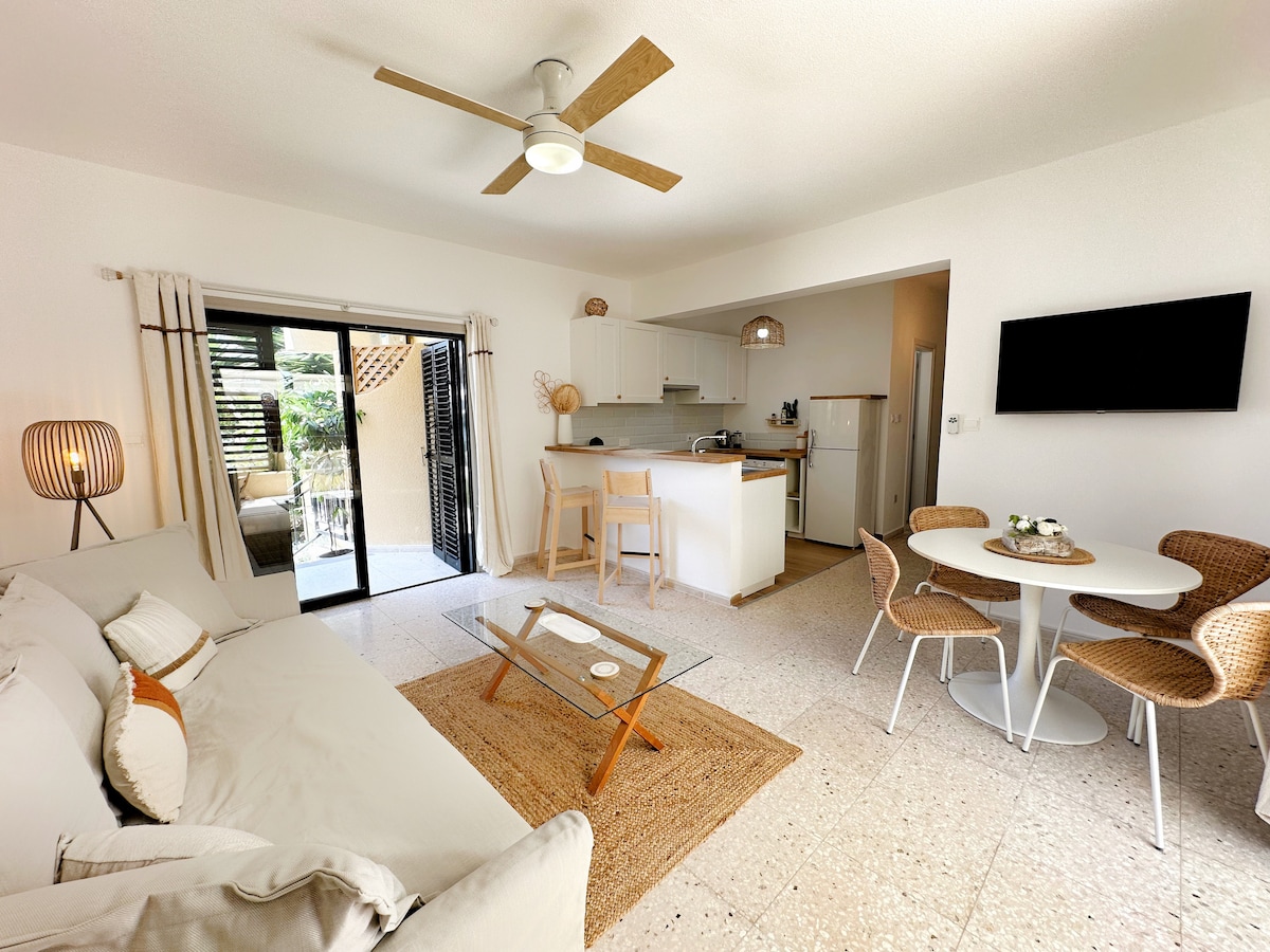 Limnaria Classic – Timeless Elegance by the sea. Located in the heart of Paphos, this beautifully renovated 1-bedroom apartment is part of the famous Limnaria Gardens — a prestigious complex with lush greenery, a large swimming pool, and a peaceful resort-style atmosphere. Everything is within walking distance: the beach, restaurants, cafés, and shops.