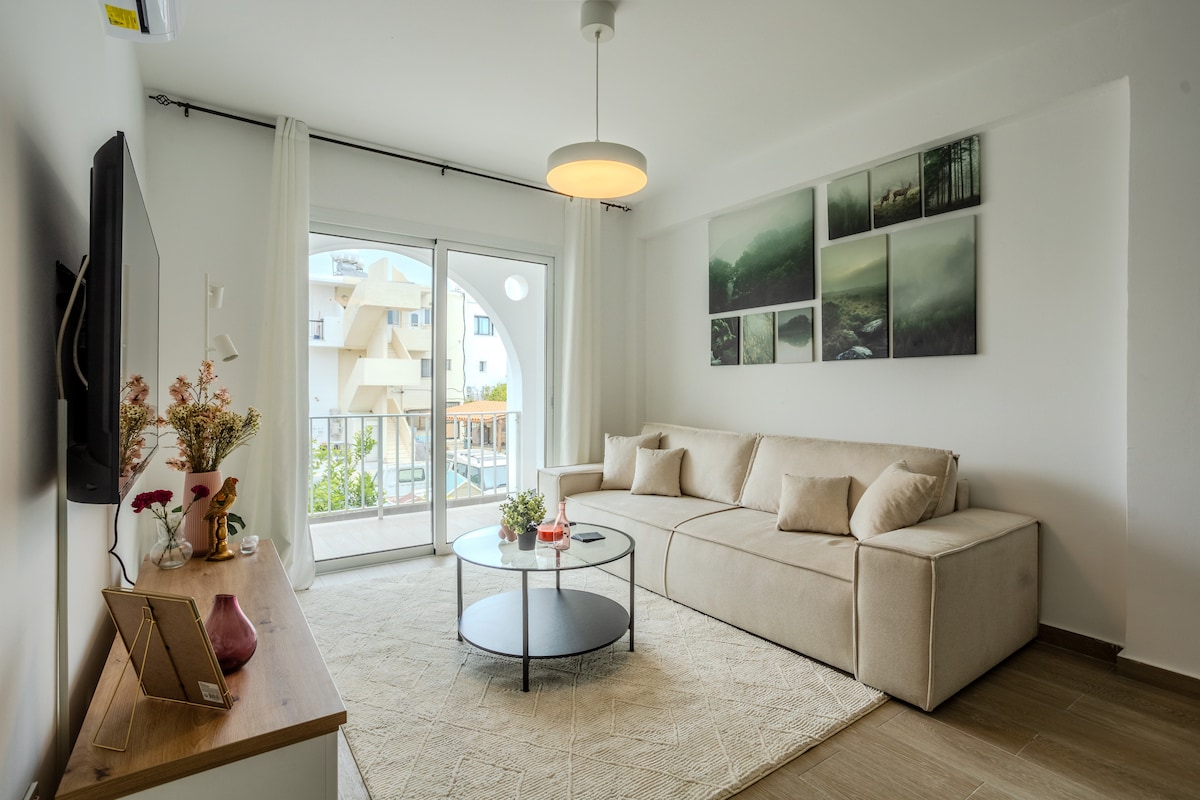 We are pleased to offer you the opportunity to stay in our spacious, fully renovated one bedroom apartment, set in one of the most picturesque holiday complexes on the Island. Modeled on Greek island style architecture, Ikaria Village boasts 3 shared swimming pools, a tennis court and beautiful landscaped gardens. Enjoy the peace and serenity that our home has to offer while you unwind with a glass of wine, or enjoy the many beaches, restaurants and cafes that are just a few minutes away!