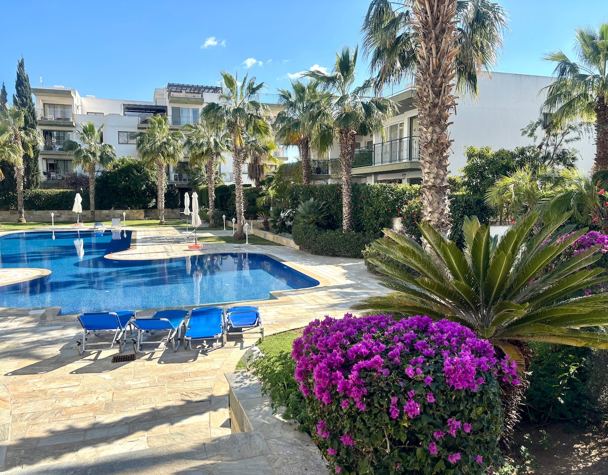 "To spitaki" * Newly decorated 2 b\room (2 floor) maisonette with private parking & driveway, patio, very close to the best Paphos municipal "blue flag" beach approx. 200 m, a mini market, a pharmacy & restaurants. The nearest bus stop is 300 m away. Only a 15-minute walk to the picturesque Paphos Harbour with shops, cafes, bars& tavernas. Fantastic and very convenient location. Ideal for beautiful walks near the beach. There is a new 2km long walkway ! *spitaki in greek means little/cute house