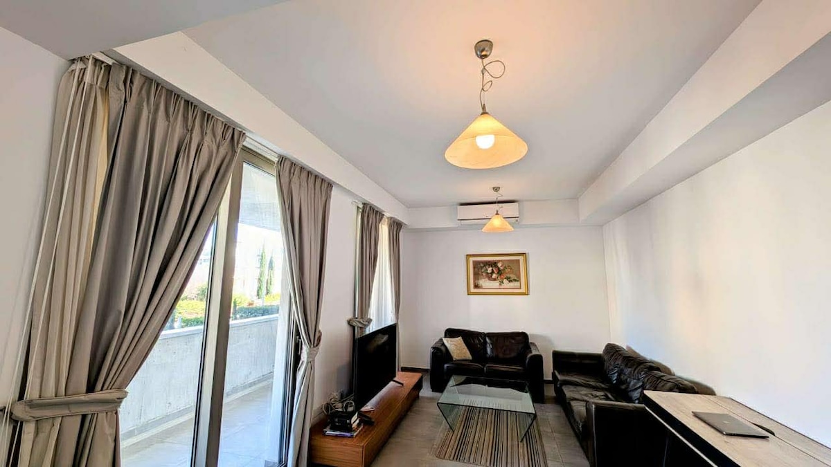 🏝️ Stylish 2-Bedroom in a Prime Location 🌇 Winter-ready (seasonal): Heated communal pool, rooftop Jacuzzi & Sauna. Located in the heart of Paphos, this modern, fully equipped, and spacious apartment offers a comfortable stay with charming pool and city views. Part of a modern complex, enjoy: - Communal heated pool (seasonal) - Communal rooftop terrace with Jacuzzi & Sauna (seasonal) - Gym 1 km – Alykes Beach 1.3 km – Chabad of Paphos 1.8 km – Kings Avenue Mall 2 km – Paphos Harbour