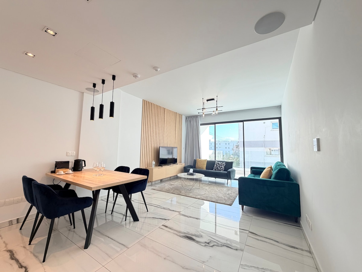Escape to this modern Airbnb apartment in Paphos, just a 15-minute walk (1.2 km) from Kings Avenue Mall and 20 minutes (1.5 km) from Paphos Harbour. The serene private balcony provides a peaceful retreat. Located in an upscale area, it's close to trendy cafes, shops, and restaurants. Featuring upscale, contemporary decor, open living spaces, and a fully equipped kitchen, it offers both comfort and style.