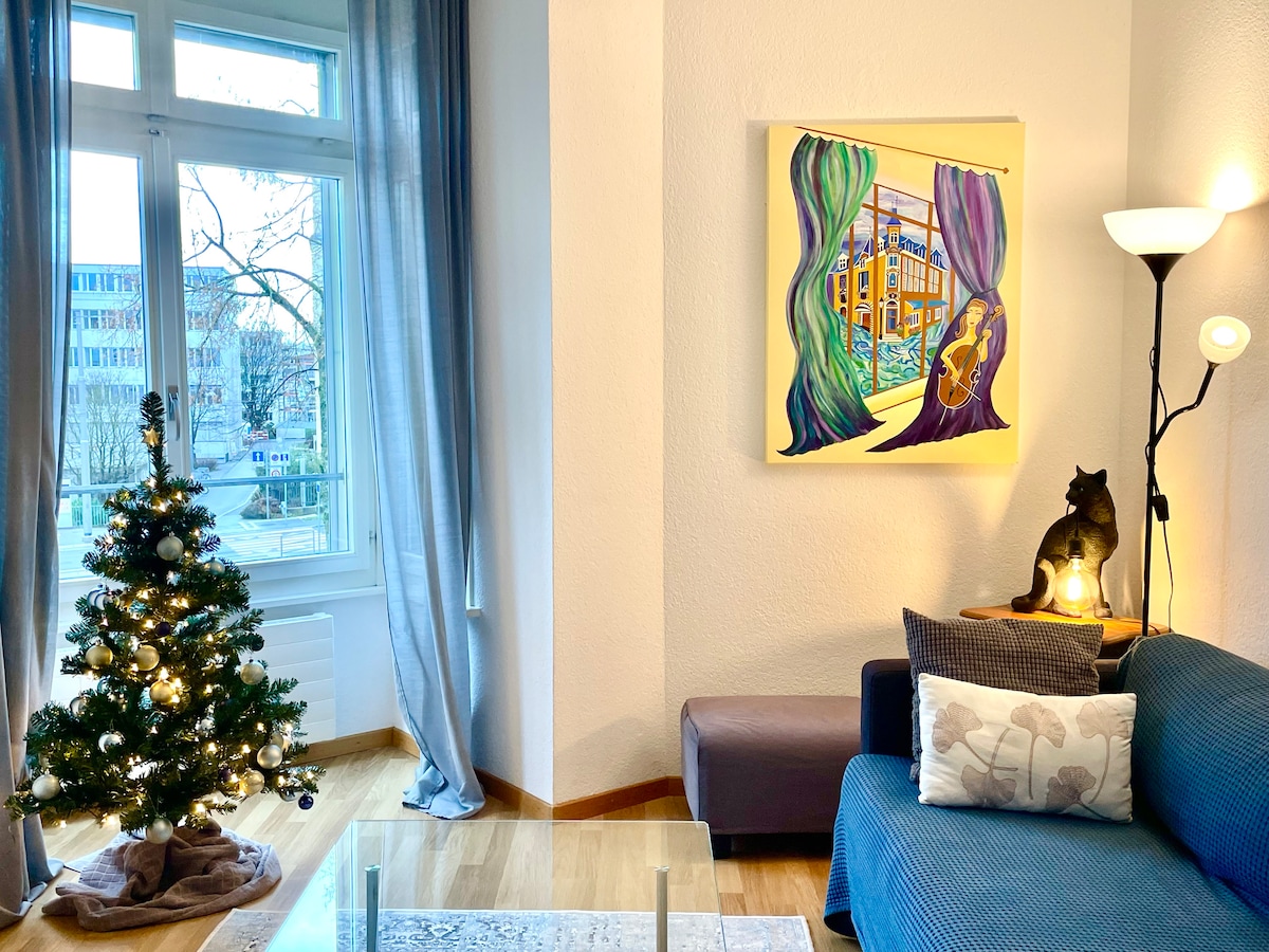 Vorab Hausregeln lesen :) Die Wohnung ist ideal für Familienurlaub oder Ferien mit Freunden, eignet sich aber auch bestens für Geschäftsreisen, zumal viele wichtige Destinationen mühelos erreichbar sind. Erdgeschosswohnung, sehr zentral gelegen! 1 gratis Parkplatz! Einkaufsmöglichkeiten direkt nebenan. Zur historischen Altstadt nur 5 Gehminuten! Ebenfalls in unmittelbarer Nähe ist der Bahnhof, nur 2 Gehminuten! 10 Min. bis zum See und der schönen Promenade! Kinderspielplatz gleich um die Ecke!