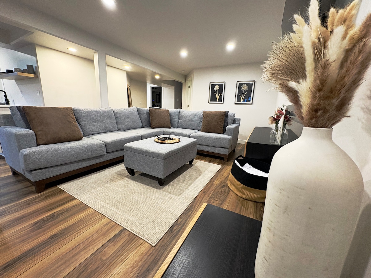 Step into a private and cozy space. Relax watching TV in bed or on the couch. This place is part of our walk out basement, so you may hear day to day living upstairs. For your safety there is a Ring camera installed at the entrance and will light up the entryway when it’s dark. Parking is on the well lit public street. Easily walk up our dedicated Airbnb sidewalk, no steps, walk around to the back of the house. You’ll be in a serene space that makes you feel right at home.