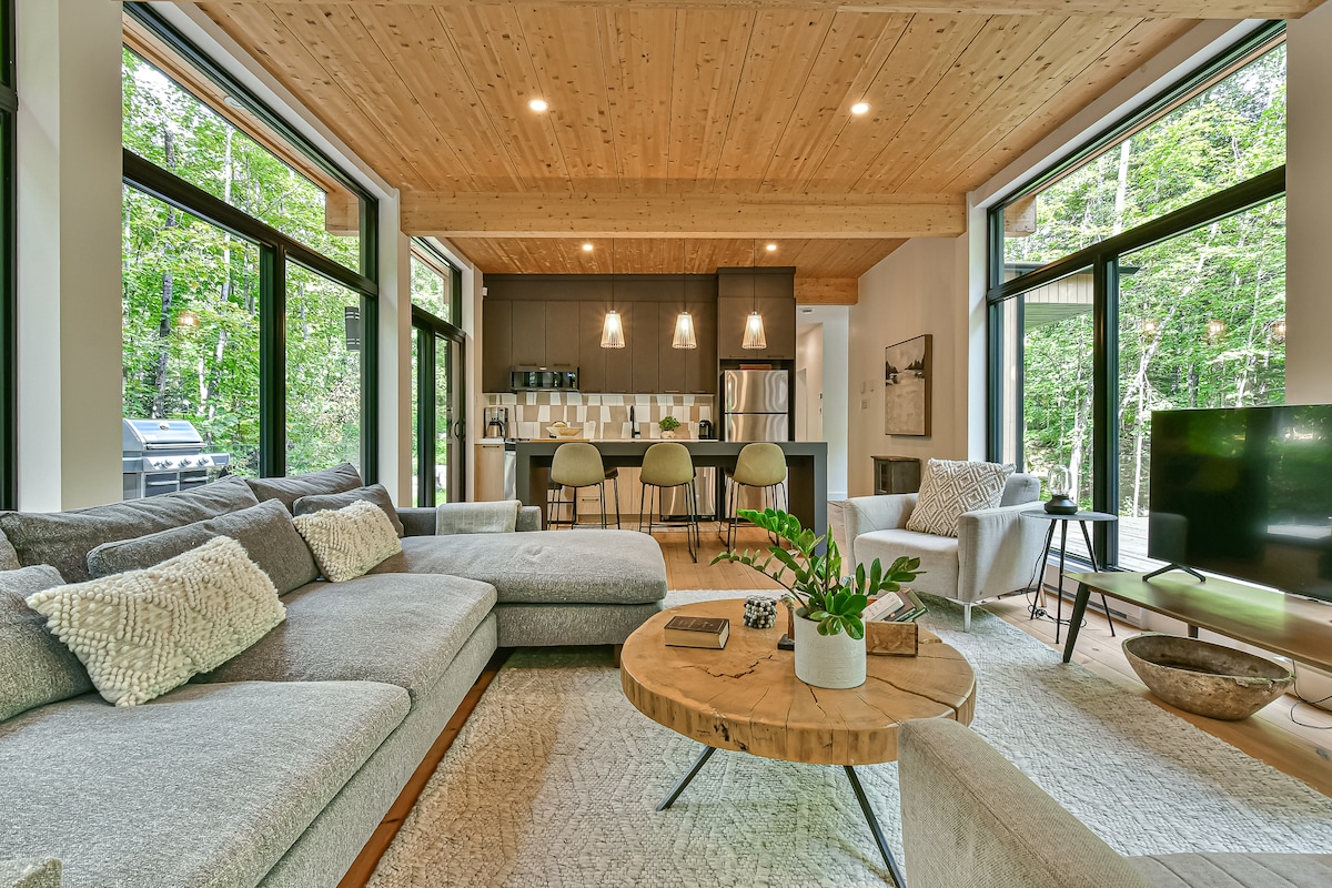 Contact us for our On-going Promotion! Secluded Architect Glass Cabin perched for breathtaking Mont-Tremblant mountains views! Klint Tremblant (Cliff in Danish) is the unique design so you can retreat to comfort and luxury. It is a majestically glazed architectural space combining natural simplicity & contemporary luxury, 10 min from village Mont-Tremblant & Panoramic terrace & Private Hot tub In Laurentian. Designed by Canadian famous Designer in shared domain of 1200 Acres!
