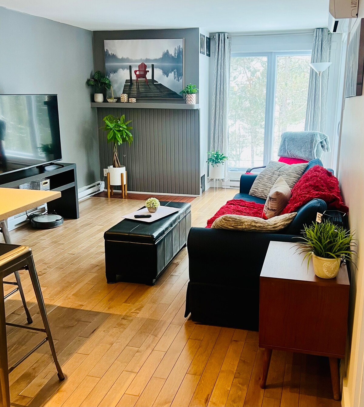 The bike path is accessible directly from the parking lot. Only a few minutes from the Voie Verte, Larrimac Golf and Tennis Club, Ski Camp Fortune, Great Canadian Bungee and the gateway to Gatineau Park. The apartment’s convenient location in Chelsea makes it a comforting destination in many ways. Come and explore this small village which has lots to offer such as many art galleries, boutiques, cafés and gourmet stops. Relax and unwind at Nordik Spa Nature. CITQ. #318284