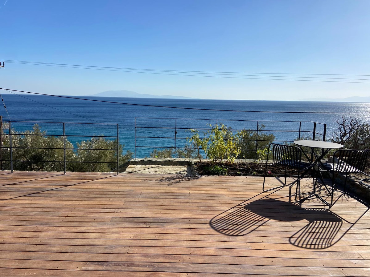 Flora's charming waterfront villa is located in the centre of the traditional picturesque village of Melinda, situated 6 km west of the village of Plomari. Our villa is situated literally on the beach, which is known for its crystal blue waters. The newly built modern house is fully equipped with all conveniences, such as a modern kitchen, air condition units in all rooms, tv, wi-fi etc. The famous traditional greek taverna of Maria is right next door, where you can enjoy local delicacies all day. In Our quiet villa you will experience greek at its summer, watching the sunset.
