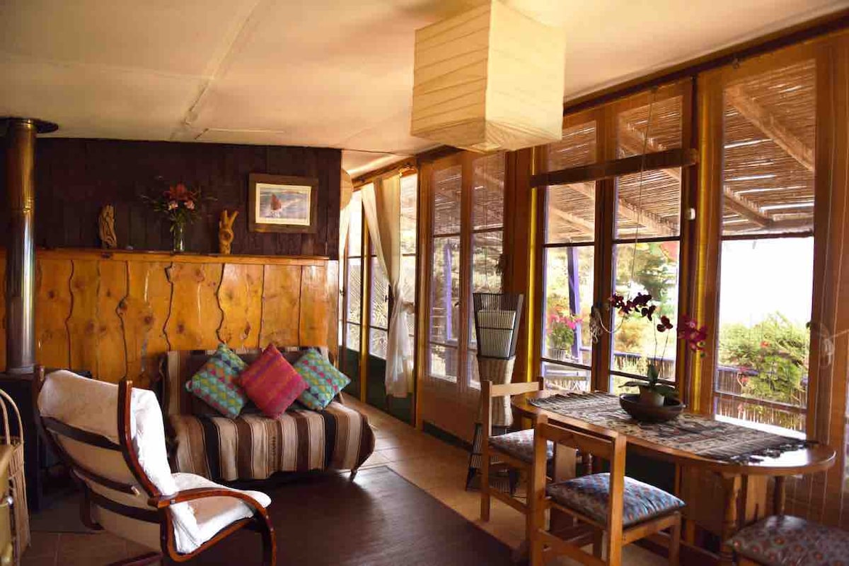 Cabaña con vista al mar y bajada privada a la playa el Clarón, ubicada en Caleta de Horcón, Puchuncavi, Chile. Tenemos una vista inigualable, lo que implica descender por un cerro para llegar a la cabaña ( hay escalera). calcula el peso de tu equipaje.Puedes ir caminando por la playa a la caleta de pescadores, puente de los deseos, feria artesanal. Puedes hacer teletrabajo y calentarte con estufa a leña Disfruta del sonido del mar de dia y de noche, y de la vista al mar en primera línea.