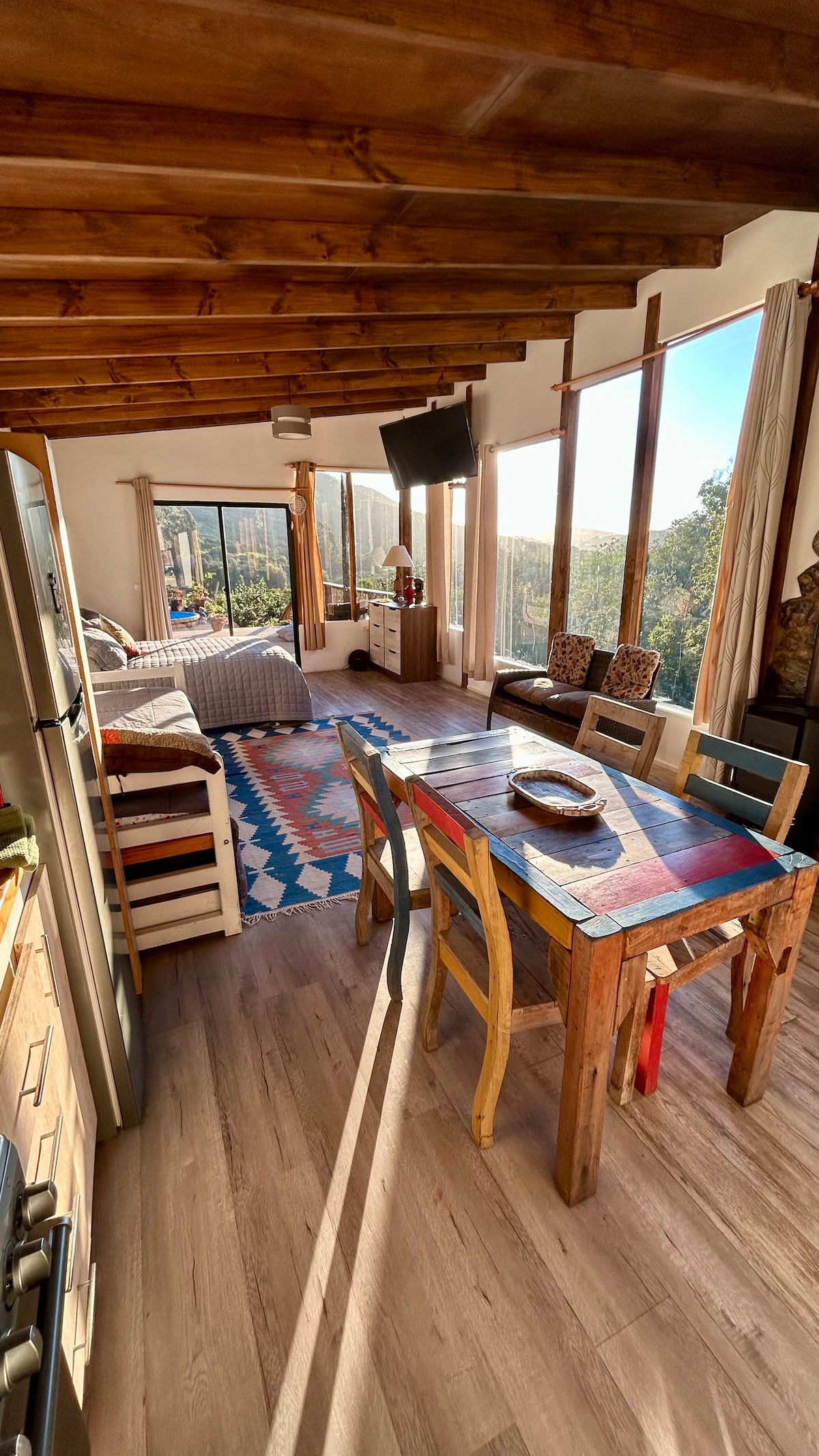 Exclusiva y romántica casa loft en el antiguo fundo de aguas claras, rodeado de árboles, tranquilidad y naturaleza, con Inolvidables vistas a la quebrada y sus bosques nativos milenarios, a solo 15 minutos de Cachagua y principales playas de la zona. La casa cuenta con 3 modernos espacios divididos en un living comedor con cocina americana, 2 dormitorios + Baño y terraza. Accesos directos a senderos, caminatas y trekking de la zona. ¡una verdadera joya para disfrutar de la naturaleza del lugar!