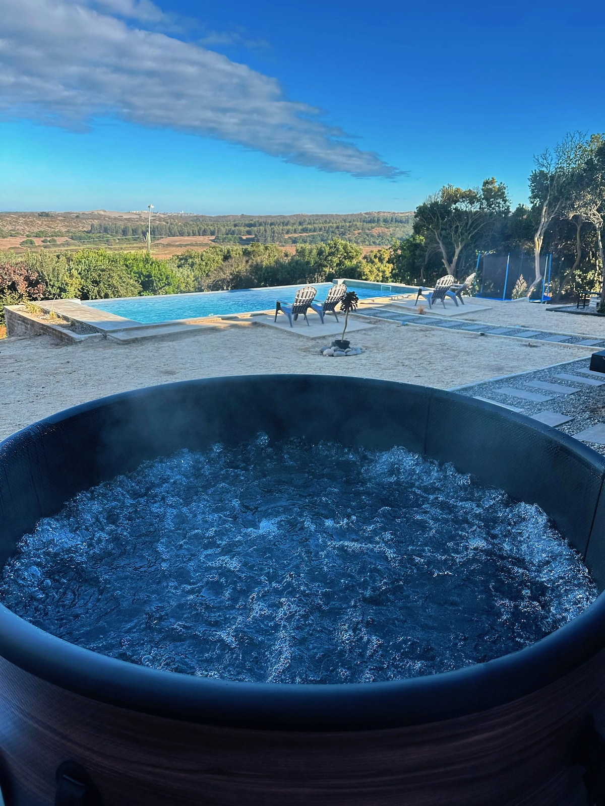 Cabaña minimalista en un terreno exlusivo de 1000 m sólo para ti. Tinaja exclusiva a tu disposición 24 horas al día. Sumérjete en agua caliente y disfruta del atardecer y las estrellas. Cabaña totalmente construida en madera. Interior, pisos y vigas a la vista. Siente la calidez de la madera y disfruta de las vistas al mar. Jardín privado con quincho y fogón de fogatas. Estufa de leña. Proyector con Netflix con pantalla gigante. Acceso al acantilado desde el terreno.