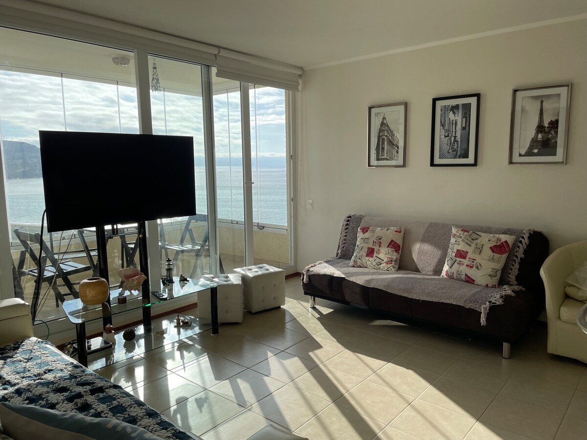La mejor vista de Maitencillo, en un departamento nuevo con todas las comodidades, de primer nivel. A pasos de la playa La Caleta, de mercados de pescados y mariscos frescos y de los mejores restaurantes de Maitencillo, este lugar tiene una ubicación estratégica: ¡será espectacular tu visita! Para tu comodidad tiene FUNICULAR. Disponibles Pisos 1 y 2 también