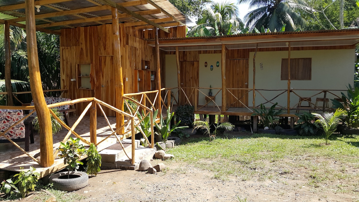 Cabin "El Cas" is located in a lush surrounding where you are able to enjoy the sounds of nature, waking-up with the sounds of Howler monkeys & birds and falling asleep with the sounds of frogs. We offer free Wi-Fi, Fan, Kitchen and a shared bathroom, further you are able to use our BBQ. In our garden you will find several fruit trees like Guanabana, Orange, Lime, Bananas, Cas & Jocote and we plant as well vegetables like sweet Peppers, hot Peppers, Plantain, Yucca, Tomatoes and Avocado.