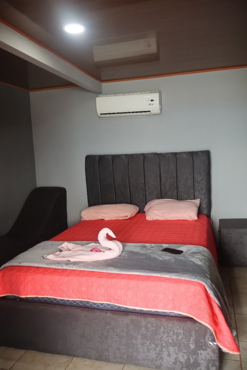 Este lugar tiene una ubicación fantástica rodeado de naturaleza. La habitación cuenta con una cama doble, ventilador, refrigerador, cafetera, agua caliente y baño privado. Los huéspedes pueden usar la cocina compartida, el comedor y area de recepción. Importante: El aire acondicionado no está incluido en la tarifa y lo puede adquirir en la recepción adicional por $25 la noche. Esta tarifa es por un maximo de dos personas: cada infante, nino y/o mascota debe pagar como huesped adicional.