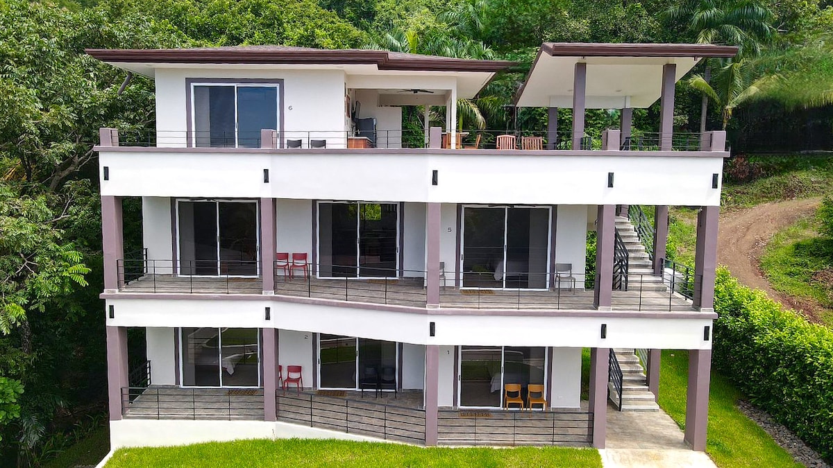 This is a quiet treasure nestled in the heart of the jungle. Each room has a private entrance and ocean views overlooking pristine paradise. We are located as close to the Montezuma waterfalls as one can stay, which is reached by a private path. Included in your stay is a full breakfast, a private hanging bridge, AC, hot water, pool and a yoga shala. We are located about 1.5k from the beach. There is a bit of a steep descent from the jungle to the ocean.