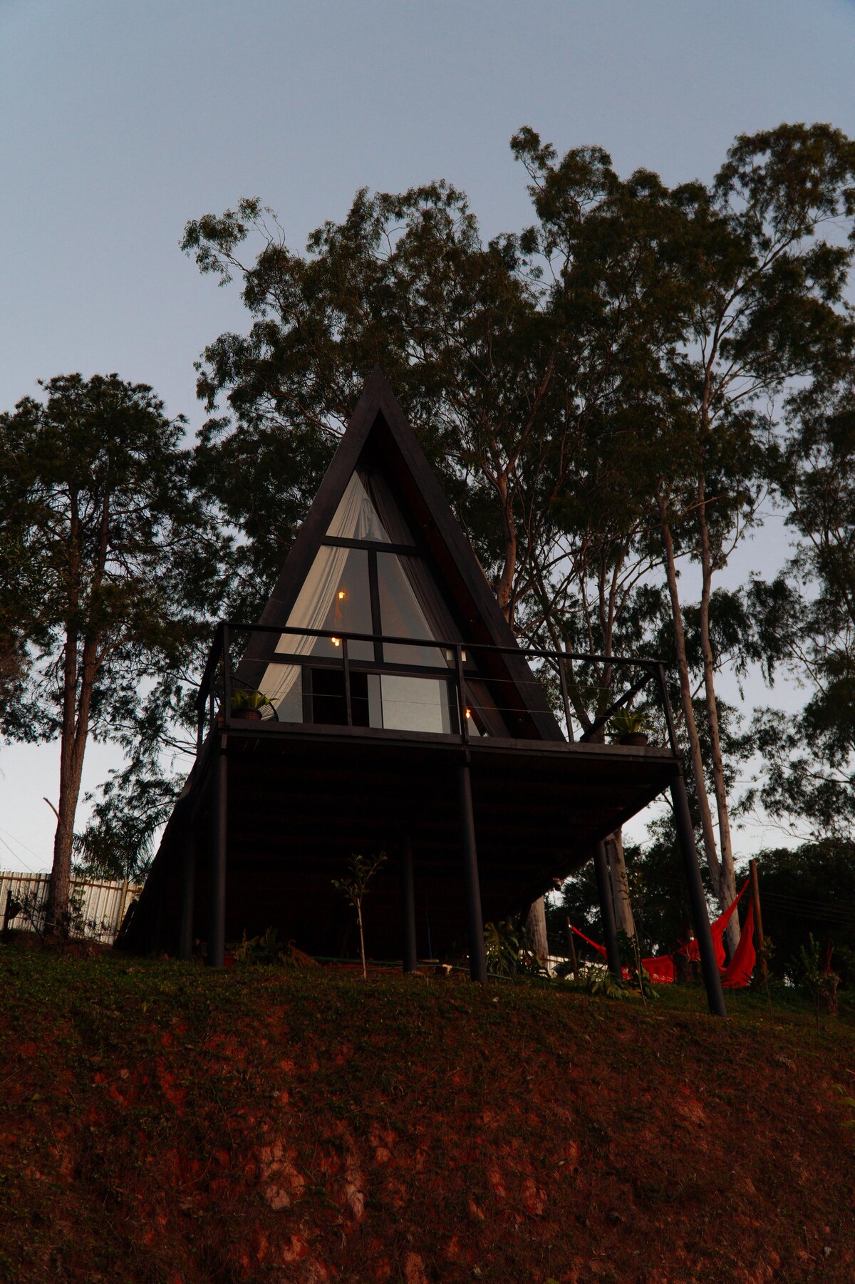 O Village dos Alpes tem uma vista única e impactante, na entrada somos recebidos por um caminho de eucaliptos que exalam um aroma refrescante junto ao ar puríssimo que temos na região. A cabana conta com uma sala agradável, pé direito alto e muito vidro, varanda com vista panorâmica para as montanhas, onde vemos o nascer e pôr do sol, banheiro social, copa e quarto no mezanino. Viva essa experiência conosco!