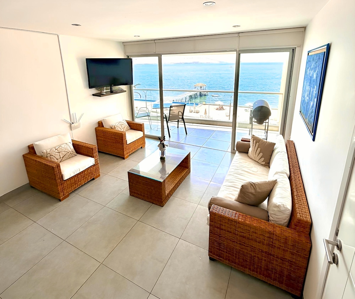Victoria Apartment Paracas La Mejor Ubicacion de Paracas Amplio Depa frente al mar con Piscina Privada! - Sol todo el Año! - Terraza con Parrilla y Piscina Privada - 3 Cuartos, 9 camas, 3 baños y hasta 12 huéspedes. - Jacuzzi en Habitacion principal - TV y WiFi - Salida directa a la playa, Muelle, Piscinas y mas!