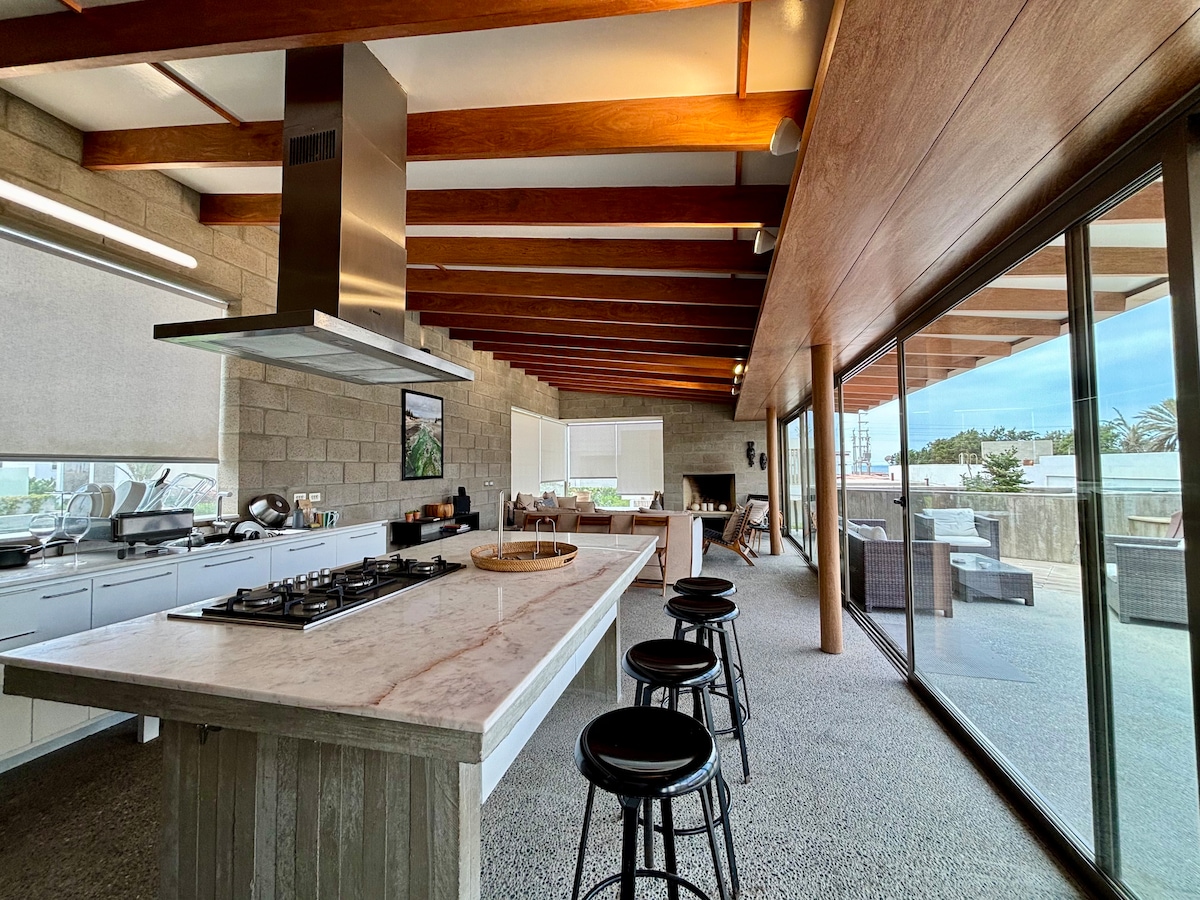 Modern and bright, luxury house, with beachfront pool, just steps away from the ocean. Housekeeper and private Chef included! Located in one of the most beautiful natural reserves in South America (Paracas) - a beach oasis in the middle of the desert, surrounded by a national parks and centuries of pre-Inca history, and 1 hour away from the Nazca lines! 3 spacious bedrooms with en-suite bathroom and closet, TV room, modern kitchen, laundry room, and a bedroom for service staff, a true gem!