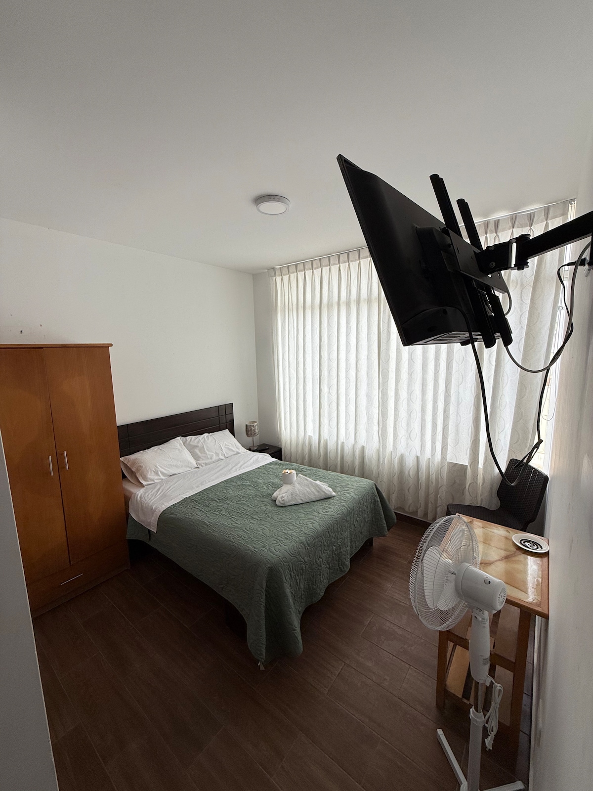 Esta cómoda habitación en el centro de Pisco, a 5 minutos de la playa, te espera Cuenta con baño completo propio con agua caliente, TV con cable, ingreso independiente y wifi. Te esperamos! (El precio es por habitación, max 2 personas x hab.)