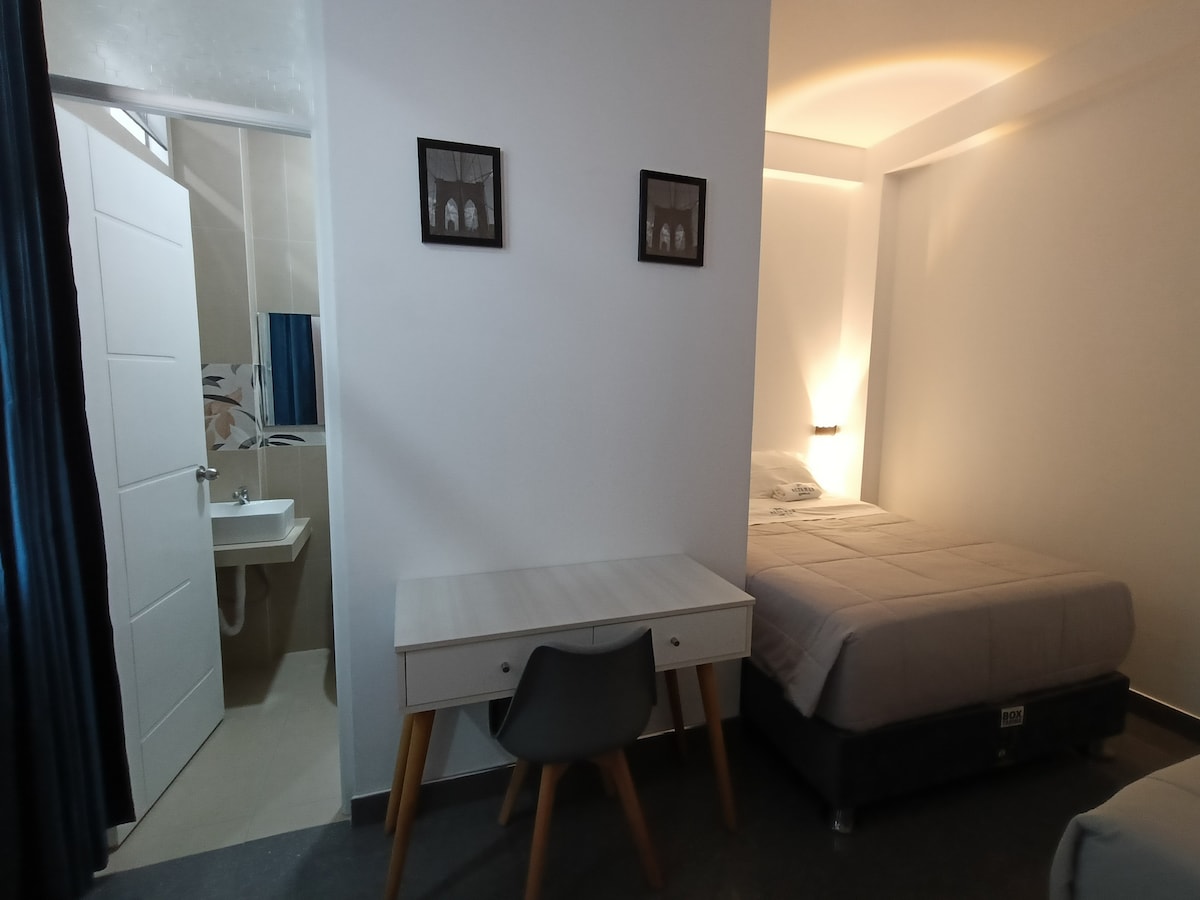 Este moderno lugar te ofrece muchos detalles encantadores. habitación con WiFi , agua caliente, TV con canales naciónales eh internacional