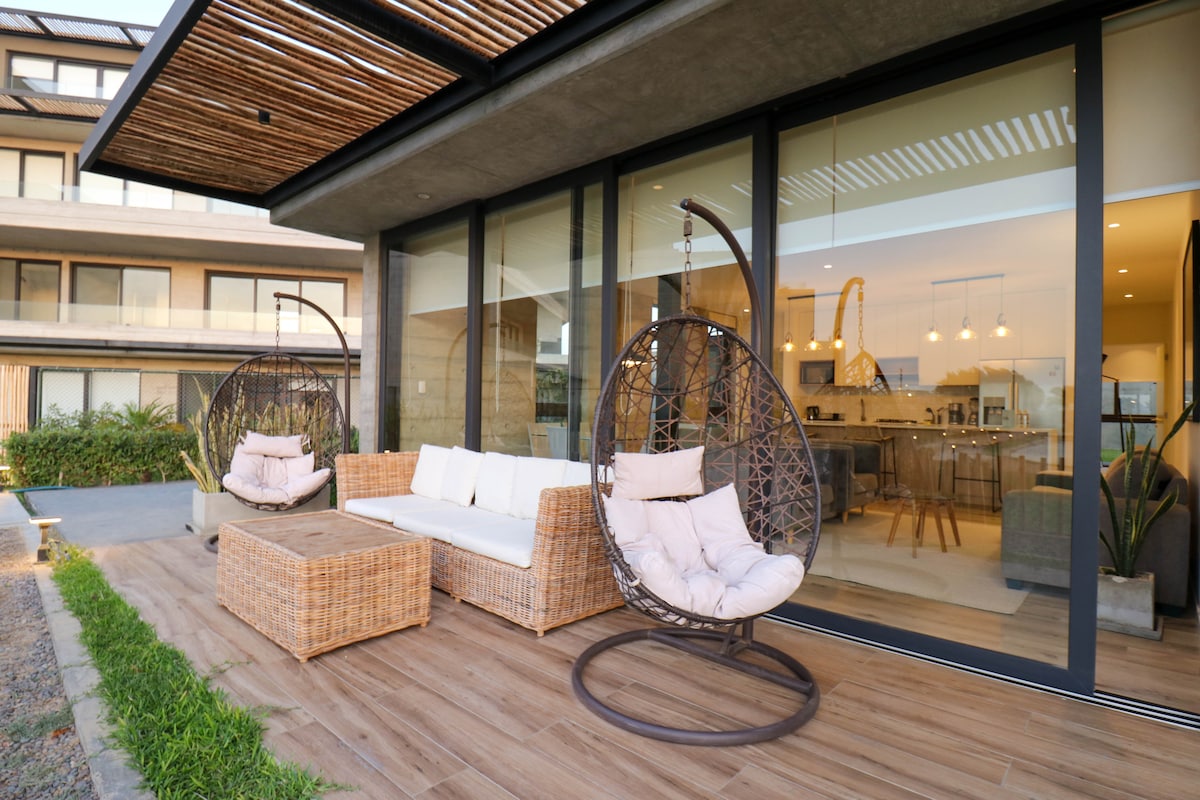 Welcome to our apartment in Paracas, on the first floor of the Navigare condominium, a coastal refuge with access to the beach and two rooms equipped for up to four people each, 2 bathrooms and 1 laundry room. The open concept layout in the living room, dining room and terrace offers a spacious and bright atmosphere. The kitchen is fully equipped. Pets are allowed.