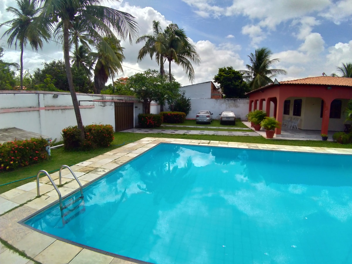 Casa grande, espaçoso para crianças, com salas e cozinhas amplas, bem clara, avarandada, com piscina, deck completo, jardim para correr e brincas, espaço para mais de 30 redes, espaço para mais de 10 carros. Toda mobiliada, e com roupa de cama e utensílios da cozinha. Ótima para passar uma temporada.