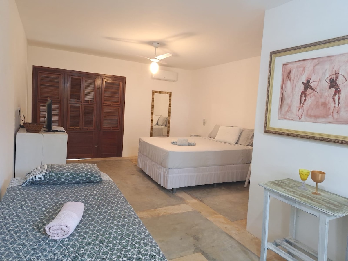 Estamos na melhor localização da cidade, a 150 mts da praia e a 300 mts do centro, onde da pra se locomover a pé facilmente na cidade. A suíte 1, é super espaçosa, arejada , conta com um bom banheiro e closet. É uma suíte familiar que acomoda 6 pessoas confortavelmente ! Nossa casa tem piscina, churrasqueira e um café da manhã super gostoso. Paracuru é hospitaleira de praias maravilhosas com águas cristalinas e quentes para banhistas, kite surfistas, surfistas... Lagoas refrescantes, dunas