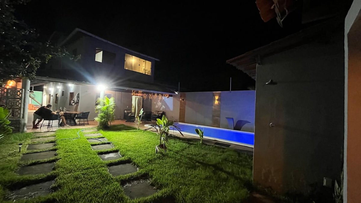 Amarela és el lugar ideal para familias numerosas y grupos grandes. Recomendable para convenciones, comuniones, bodas, retiros espirituales y eventos en general. En el precio se ofrece la casa entera con 9 habitaciones, cocina barbacoa, piscina y un gran jardín con diferentes zonas de descanso. El precio es para 16 adultos. Cada persona extra tiene un coste de 50R$ por día. En verano se pueden añadir acomodaciones no incluidas en el precio! Los niños menores de 11 años no pagan su estancia!