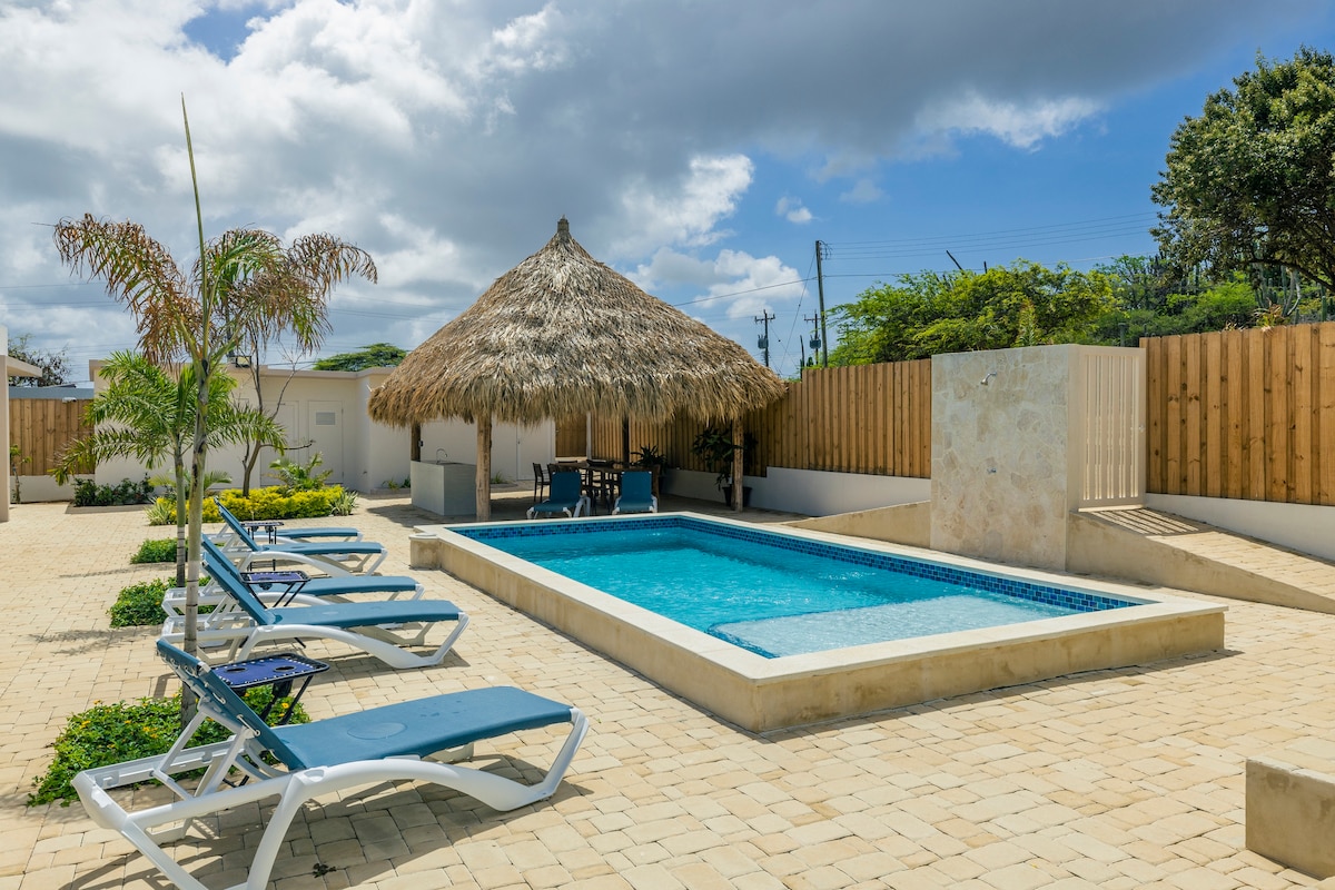 Experience Aruba from the comfort of this modern, comfortable home with a 5-minute walk to some of the world's greatest beaches. The house is in a very quiet neighborhood with a PRIVATE backyard. Enjoy your own sky-blue pool, bar-b-que, tiki bar, and sitting areas. An excellent choice for families who want to live like the island locals and enjoy nearby restaurants, night clubs, resorts, malls, and beaches.