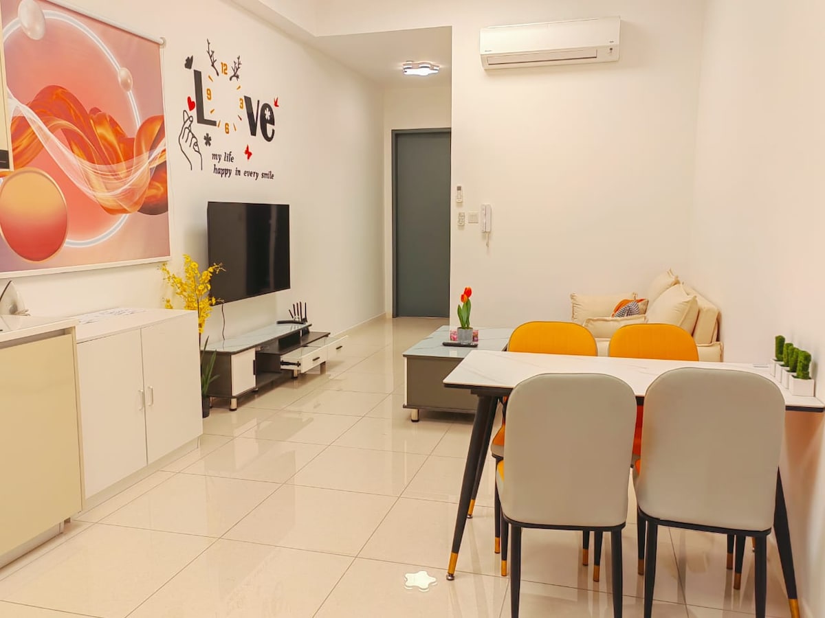 Luxurious spacious 3-Bedrooms unit with Bathtub! Premium quality King & Queen size Beds that guarantee good sleep here with amazing Midvalley Southkey Mall view! Main Highlight! -Private Bathtub -65" Smart TV with YouTube and Netflix apps -Pool Table -Retro Game Console -Drinking water Dispenser Surround with shopping mall & wide range of local tasty food - 2 mins drive to Midvalley Southkey JB - 5 mins to KSL City Mall - 8 mins to City Square Mall & Custom JB
