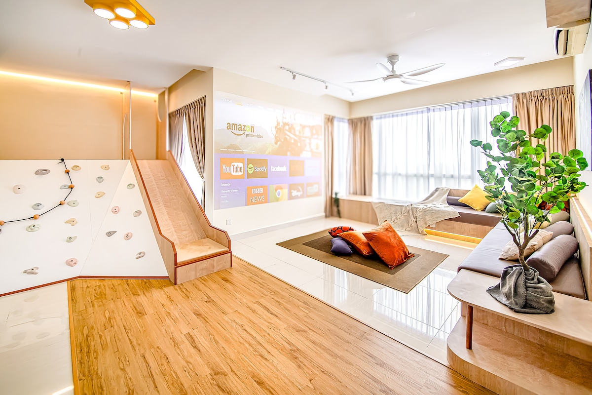 Family Adventure Stay 🏡 | 5 Min to LEGOLAND | Slide, LEGO Wall & Pools Just 5 mins to LEGOLAND & Gleneagles. A cozy, family-focused space built for both play and relaxation. • 🎢 Play, Kids Zone: Indoor slide, mini climbing wall, tunnel, LEGO wall, toys & storybooks • 🛋️ Living Comfort: Home projector, high-speed Wi-Fi, work desk, hot/cold water dispenser • 🏊 Splash Time: Infinity pool, children’s pool, fun water toys A perfect blend of play, comfort, and convenience for families.