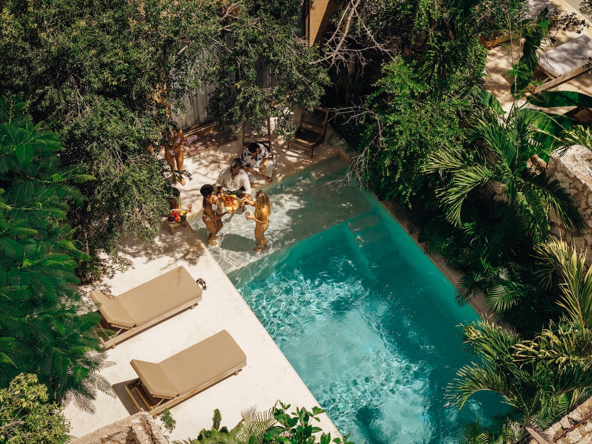 浪漫温水泳池别墅|时尚图卢姆度假胜地