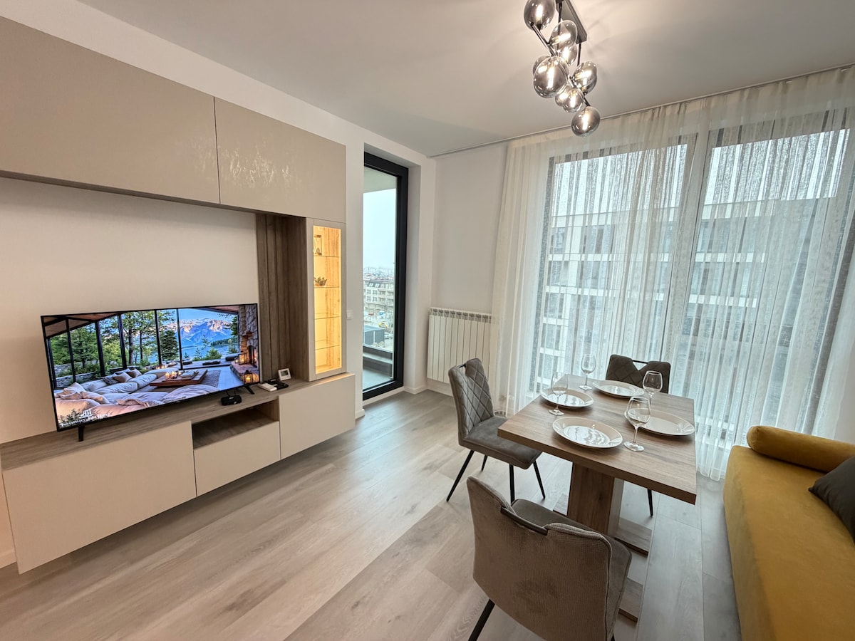 The place to stay when you are in Sofia! Come enjoy a luxurious experience in this one of a kind brand new development in Studenstki grad offering luxurious and stylish furnishings, a fully equipped bedroom, kitchen and bathroom with all you need for a comfortable stay. Located right next to the University of National and World Economy (УНСС) the building is unique with its holistic approach to solving your residential needs - from the smooth check in process to a comfortable, relaxing sleep.