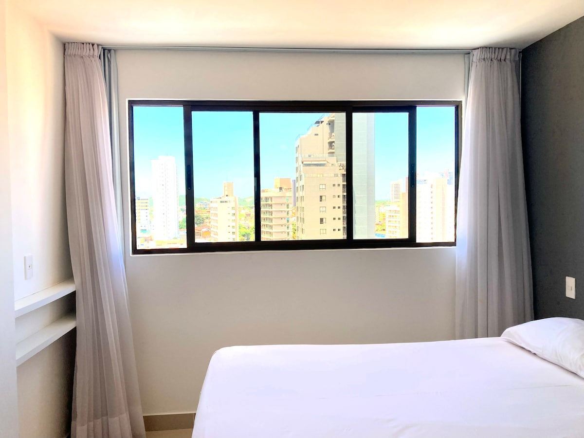 Novíssimo apartamento com decoração sofisticada, moderna e aconchegante. Um lugar incrível, diferenciado, muito bem localizado, com uma vista ímpar. Muito Próximo a restaurantes, padarias e bares (pode fazer a pé). O apartamento conta com duas LIMPEZAS SEMANAIS, fechadura eletrônica e portaria 24h. Ele tem duas camas de casal.