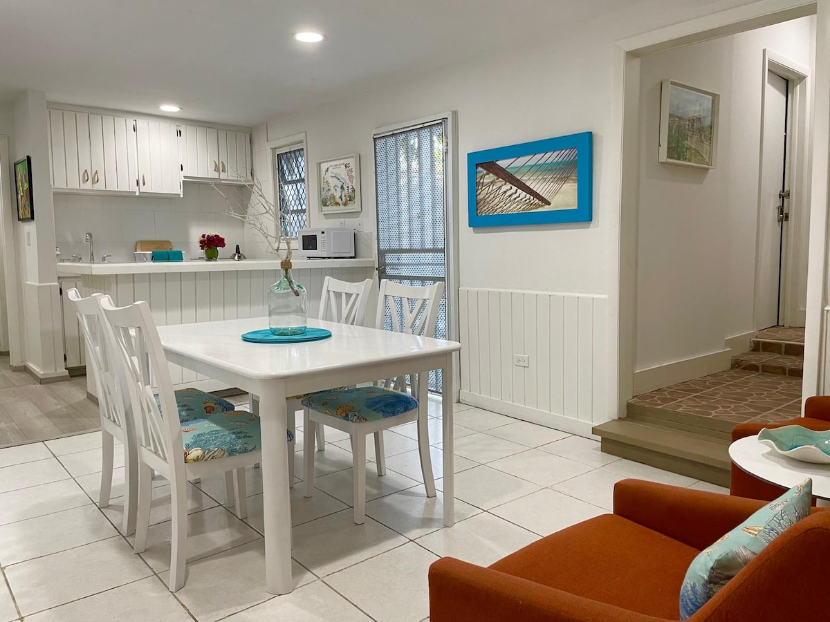 Located on a tucked away beach, as the name implies, "Sandbox Studio" is a studio apartment with a private screened in porch just steps away from crystal clear water and pristine white sand. This picturesque apartment is located in a gated community and has been newly renovated to include everything to make your stay comfortable, including washer/dryer, cooking appliances, and WiFi. Beach chairs, towels, snorkel gear, kayak and two paddle boards included.