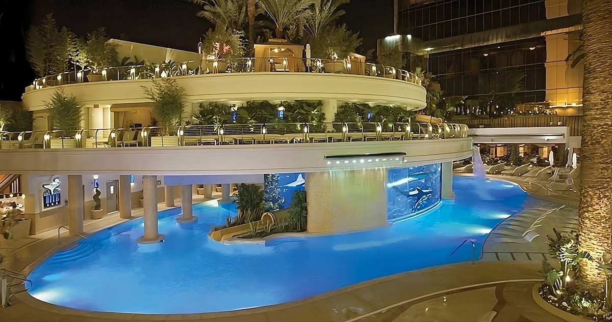 Enjoy our contemporary luxury suite at a family & business-friendly resort just 1 block from the central Vegas strip. The Sphere, Caesars, Venetian Expo, & many convention centers are just a glimpse of what you can visit nearby. The suite has everything you may desire while all resort features are available. ✔ Patio (1st Floor)/Balcony (2nd & 3rd Floor) ✔ Fireplace ✔ 2 King Beds & 1 Sleeper Sofa ✔ 5 Swimming Pools w/ Splash Feature ✔ Activity Center ✔ 2 Gyms ✔ Restaurant & Bar ✔ Mini Mart