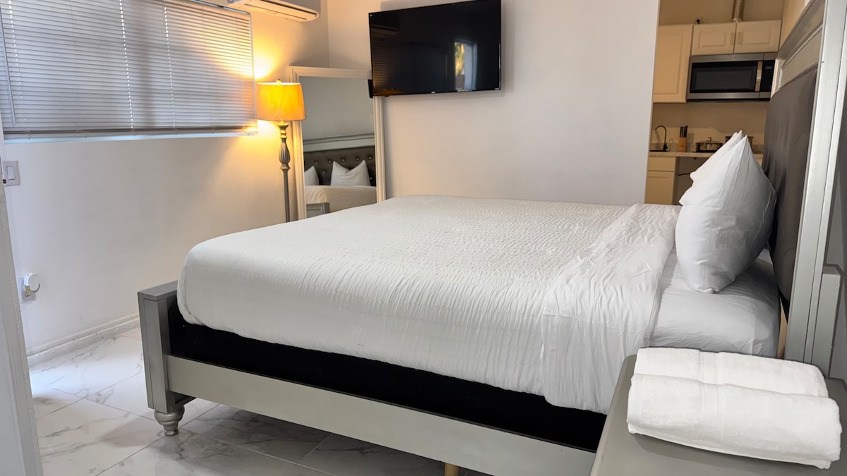This seductive studio at Palms Place offers stunning balcony views of the Las Vegas Strip from the 33rd floor. With a sultry, modern design, it combines intimate comfort with vibrant energy. Every detail invites you to relax while soaking in the city’s electrifying atmosphere. Whether you’re here to dive into Vegas nightlife or unwind in luxurious comfort, your stay will be filled with excitement, glamour, and unforgettable moments that capture the essence of Las Vegas.