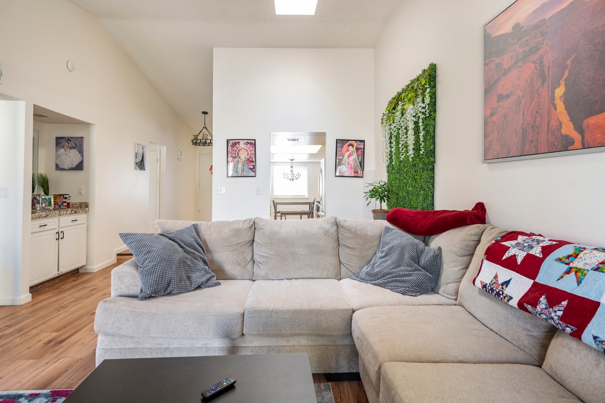 Discover this modern Las Vegas retreat featuring brand-new furnishings, a king suite, and a bright open-concept layout. Enjoy a fully equipped kitchen with stainless steel appliances, fast Wi-Fi, and smart TVs throughout. Relax in spacious bedrooms or take a dip in the beautiful community pool. Perfect for families, groups, or business travelers. Conveniently located near shopping, dining, parks, and just a short drive from Harry Reid Airport and the iconic Las Vegas Strip.