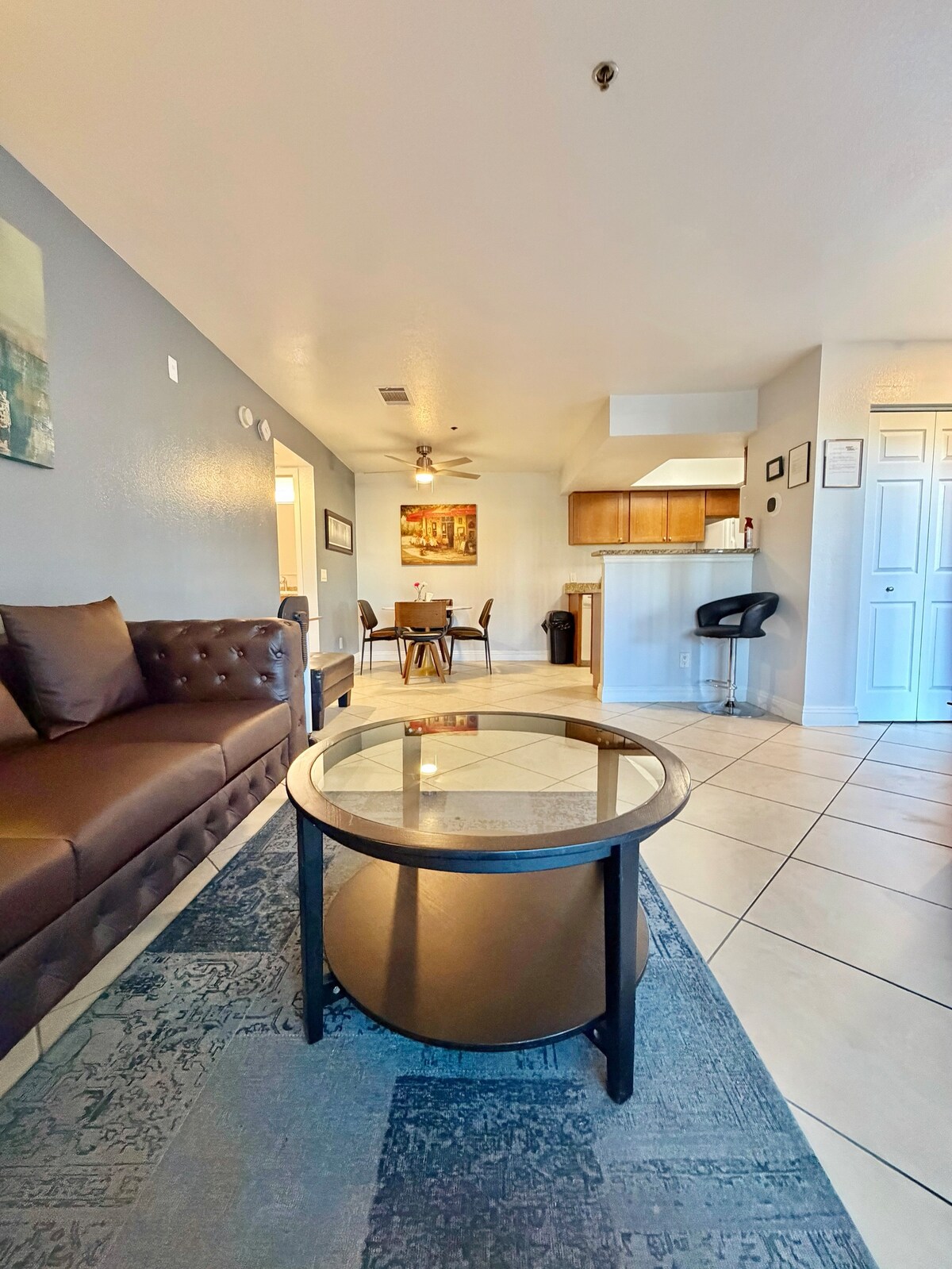Stay in style in this ultra modern, fully furnished condo, only one block from the Las Vegas strip! Located adjacent to the Palms & across the street from the Rio. Ceiling fan in bedroom & living room. WiFi, washer/dryer, fully stocked kitchen, refrigerator, microwave, oven & dishwasher. 24/7 on site security. Designated uber/lyft pickup in the front near clubhouse. FREE parking, no resort fee