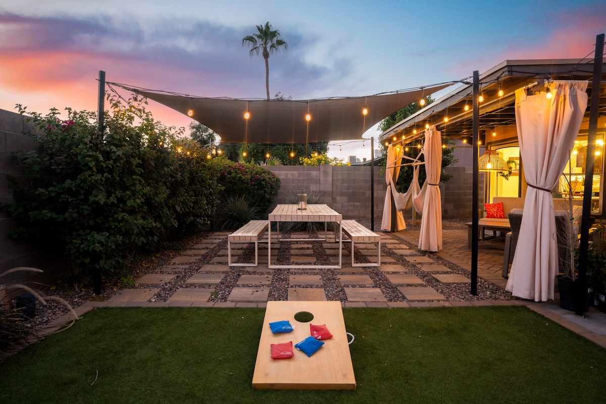 Mid-century modern meets luxurious desert living in this beautifully remodeled Tempe townhome! The Papago Pad features 2 bedrooms, 2 bathrooms and a loft that triples as a bedroom/office/coffee bar. You can look forward to a home that is peacefully situated minutes from the Papago Mountains and perfectly central to Sky Harbor Airport, Old Town, Mill Ave and ASU. Also fully remodeled with tons of amenities, a spacious turf patio and community pool! TPT License: 21381359