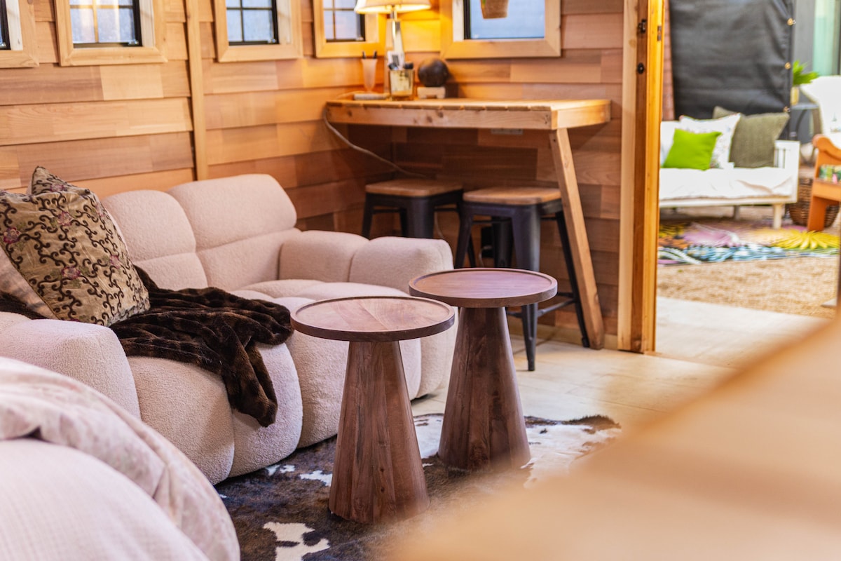 Escape to this one-of-a-kind cedar cabin, offering a private sanctuary in the heart of the city. Thoughtfully designed w/a modern edge, it features expansive windows flooding interior w/natural light yet maintaining a cozy, secluded feel. Outside, a private yard, where you'll find an antique clawfoot tub/shower, perfect for unwinding under the open sky. Inside, industrial elements blend seamlessly w/warm cedar tones, creating an inviting atmosphere ideal for both relaxation & inspiration.