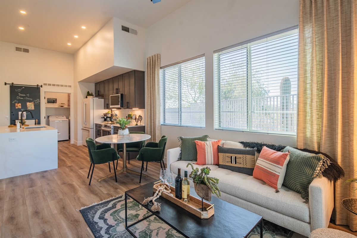 Welcome to Tempe! This 2BR/1BA home has everything you need for a relaxing stay. Fully equipped with dimmable smart lighting and speakers in every room, with a recently remodeled kitchen and bathroom that boasts a spa-like experience in the soak tub, in-unit laundry, high speed internet, 86in 4K TV (all major streaming and 300+ movie collection, with 5.1.4 surround) included and a private back yard, this home is perfect for either a quick trip to the city, movie night, or backyard daycation!